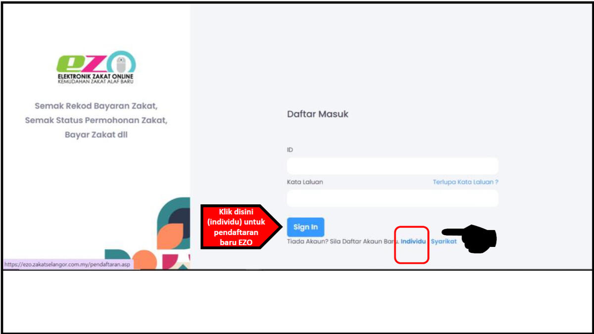 Bagi pengguna baru sila daftar akaun baru – klik [Individu]