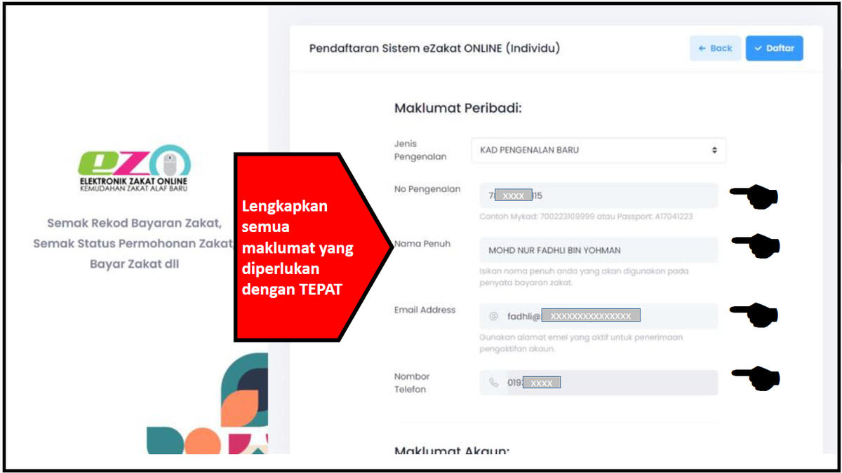 Sila pastikan alamat email dan no telefon aktif untuk tujuan pendaftaran/penggunaan.