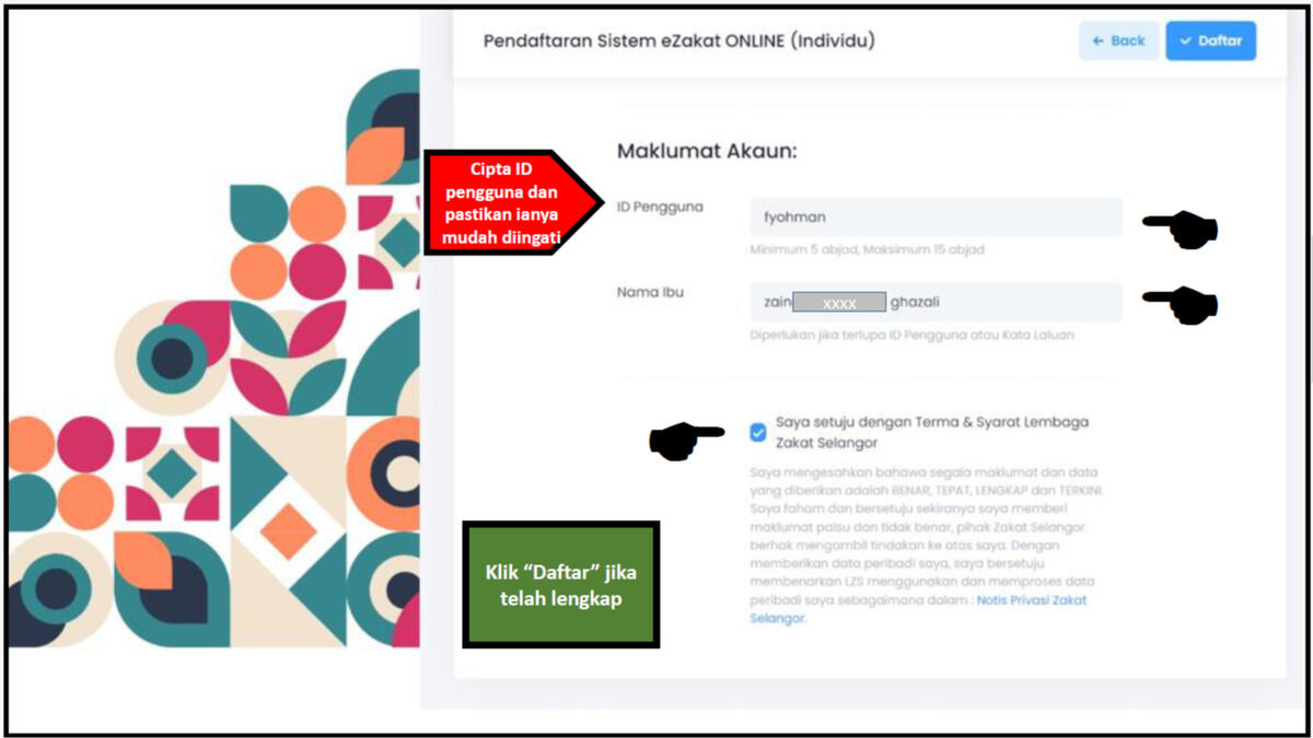 Pastikan anda mencatat atau ingat ID pengguna anda.