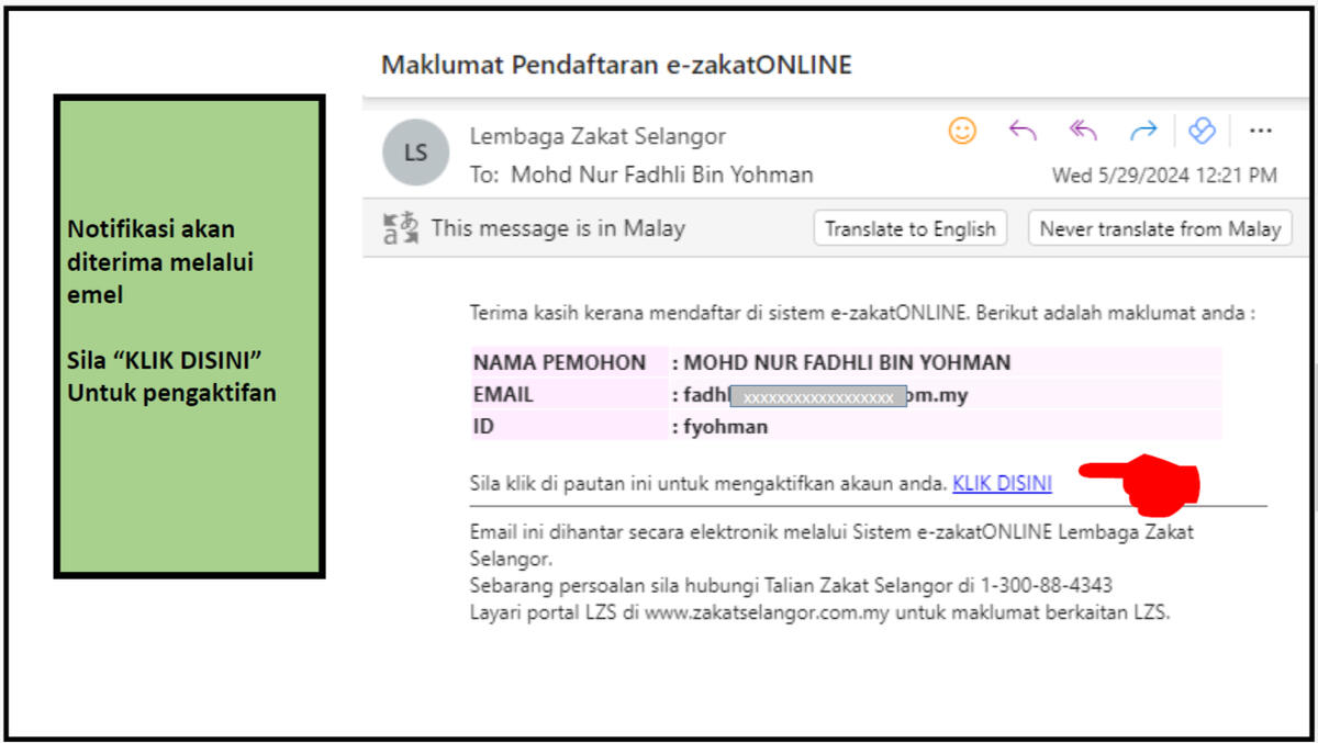 Anda akan menerima email pengesahan pendaftaran EZO... sila ikuti langkah seterusnya seperti dirajah berikut