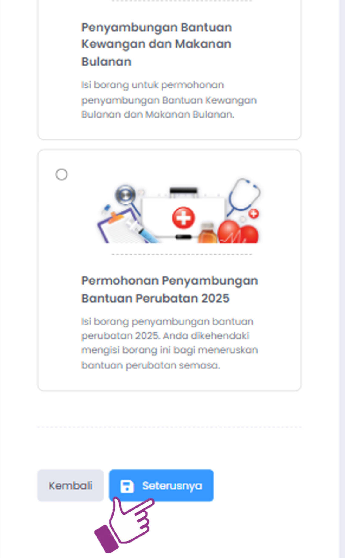 Pilihan Permohonan Penyambungan Bantuan Perubatan 2025