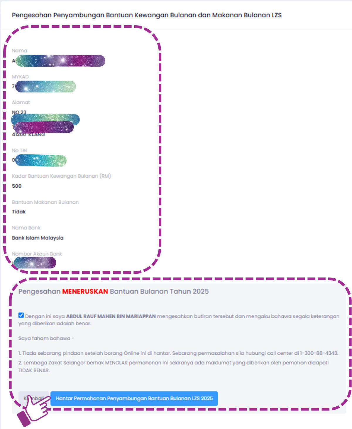 Klik Hantar Permohonan Bantuan Bulanan LZS 2025